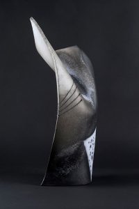 Claude Voisin, céramiste, après 30 ans d’architecture croise la courbe, les lignes, les surfaces avec la plasticité éphémère de la terre, d’où un travail sur la torsion, le déhanchement, le plissement, l’affaissement. |